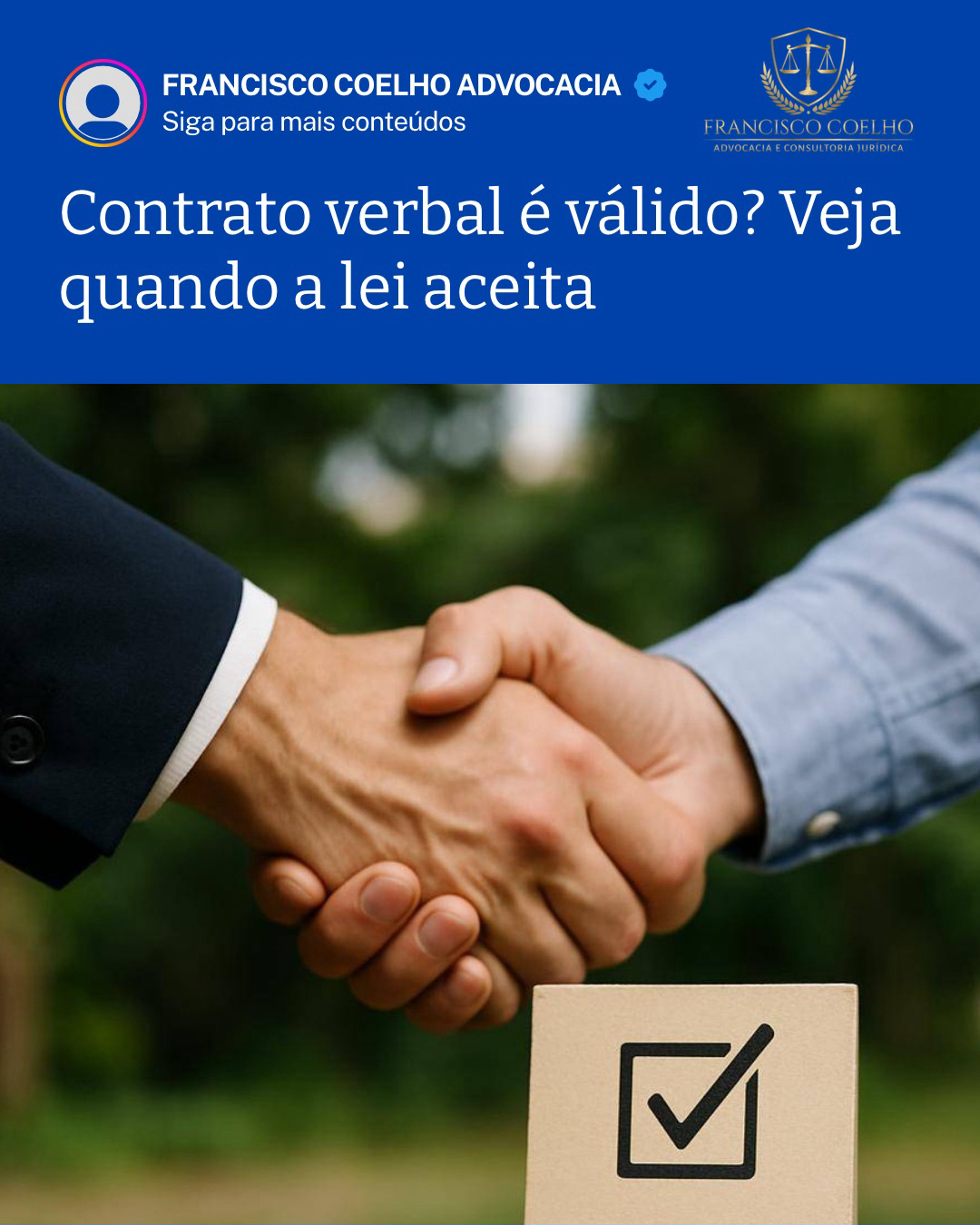 • Ou seja: se a lei não exigir contrato escrito, o acordo verbal tem validade jurídica.